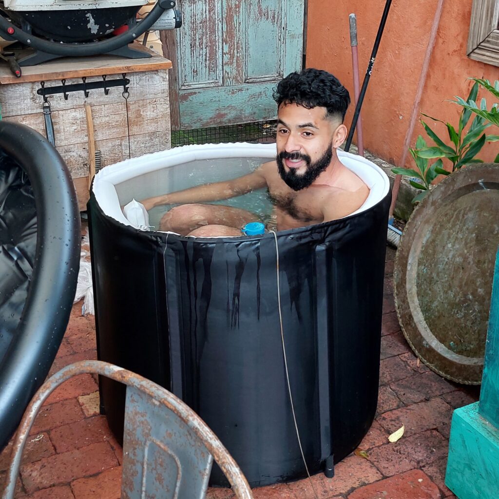 Teniendo una tina para el agua, comprando 30 kgs de hielo para lograr una temperatura cercana de los 10°C, y poniendo un cronometro para tomar tus tiempos de inmersión de manera segura.